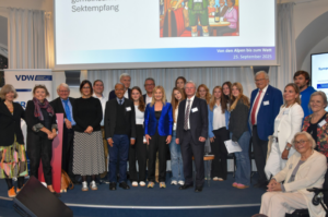 Dr. Maria Reinisch schilderte ihren eigenen Weg zu Graßl. Ursprünglich im Topmanagement tätig, promovierte sie später in Hirnforschung. Ob sie nicht neben der Promotion die Geschäftsführung der VDW übernehmen wolle, wurde sie gefragt und zu Prof. Graßl eingeladen: „Ich bin als Doktorandin hineingegangen und als Geschäftsführerin wieder herausgekommen“, erinnerte sie sich. In den vergangenen zehn Jahren habe sie besonders geschätzt, wie sehr Graßl andere fördere, statt sich selbst in den Mittelpunkt zu stellen.