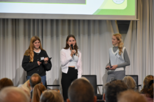 Julia Dietrich, Deike Miege und Lale Trieschmann stellten das Klimaparlament und den Klimarat des Max-Windmüller-Gymnasiums vor. Beide wurden 2018 im Rahmen des UNESCO Climate Action Projects gegründet und sind demokratisch organisiert: Alle Klassenstufen können Ideen einbringen, der Klimarat setzt sie um.