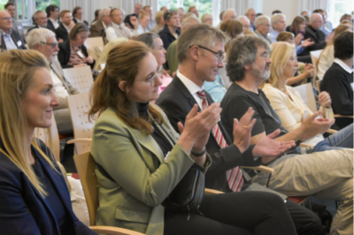 Mit einem augenzwinkernden „Bleiben Sie unser Klimafuzzi – und mögen viele weitere nachkommen“ schloss die Senatorin ihre Laudatio und überreichte unter großem Applaus die Medaille.
